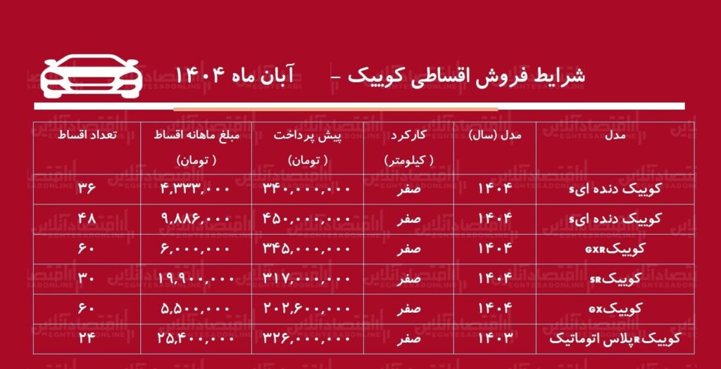 آغاز فروش اقساطی کوییک امروز شنبه ۱۷ آبان ۱۴۰۴ / با حداقل بودجه یک خودرو صفر خریداری کنید!