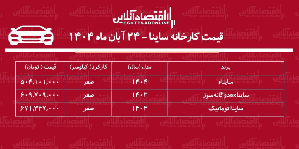 سایپا در روزهای ابتدایی آبان ۱۴۰۴ فهرست تازه قیمت محصولات خود را منتشر کرد و بهای کارخانهای مدلهای مختلف ساینا را به شکل چشمگیری بالا برد؛ اقدامی که دوباره نگرانیها درباره افزایش قیمت خودروهای اقتصادی را تقویت کرده است. هر سه نسخه این خانواده یعنی ساینا S، ساینا GX دوگانهسوز و ساینا اتوماتیک با افزایش قابل ملاحظه قیمت مواجه شدهاند؛ افزایشی که در برخی مدلها از ۱۰۰ میلیون تومان نیز فراتر رفته و فاصله نرخ کارخانه و بازار را بیش از گذشته گسترده کرده است.