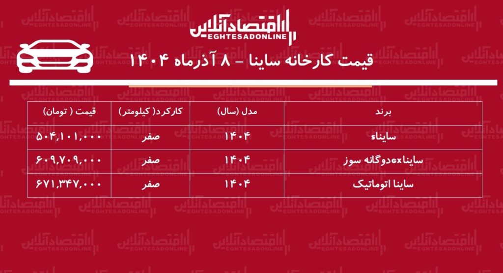 ساینا اتوماتیک که در ابتدای سال با قیمت ۵۶۸ میلیون تومان عرضه میشد، طی چند ماه گذشته روندی کاملاً صعودی را تجربه کرده و اکنون با افزایش ۱۰۳ میلیون تومانی، قیمت کارخانهای آن به ۶۷۱ میلیون تومان رسیده است.